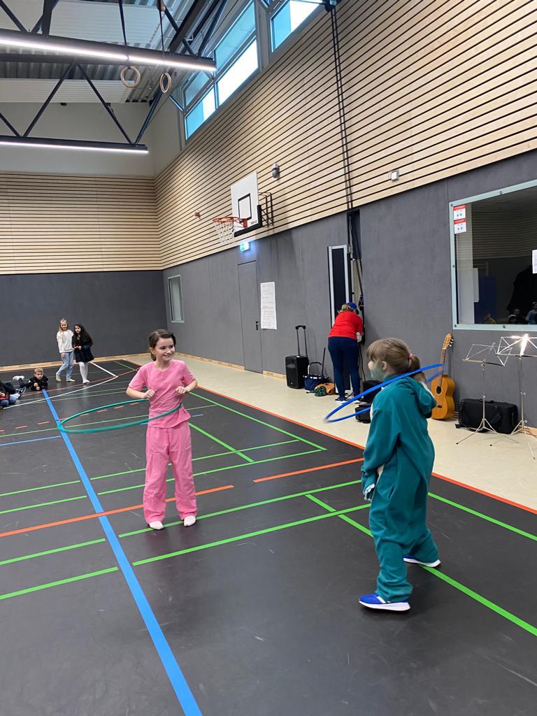 Nach einem spontan eingeübten Rollenspiel der Klasse 1b, bei dem unsere FSJler Til Reinel sogar verhaftet wurde, verzauberte uns die Klasse 1a mit Tänzen und einem Sketch von Niklas und Mohammed. Auch die zweiten Klassen animierten ihre MitschülerInnen zum Mittanzen. Leonie, Luise und Lotta aus der dritten Klasse führten einen Zaubertrick vor und auch Vincent und Jan nahmen die SonnenschülerInnen mit in die magische Welt der Zauberei. Aber auch Mathematik kam nicht zu kurz, denn Frau Lillge ehrte die drei ersten Plätze der Matheolympiade: Mats aus der vierten Klasse hatte die meisten Punkte erreicht, gefolgt von Mats und Kai aus der dritten Klasse. Glückwunsch an dieser Stelle! Anschließend beglückten uns Niklas und Nik (Klasse 4) mit ihrem Spiel auf dem Saxophon und Merle und Josefina (Klasse 4) mit ihrem Gitarrenspiel. Nach einem witzigen Rollenspiel von Merle, Josefina und Paula ging es bei Julia und Jule aus der vierten Klasse auf den Ringen hoch hinaus. Abschließend zeigten uns Ava und Feenja aus der dritten Klasse, wie toll sie mit den Reifen umgehen können. Alles in allem eine absolut gelungene Monatsfeier – einfach mal ganz anders! Ein großes Dankeschön an alle, die sich beteiligt haben!